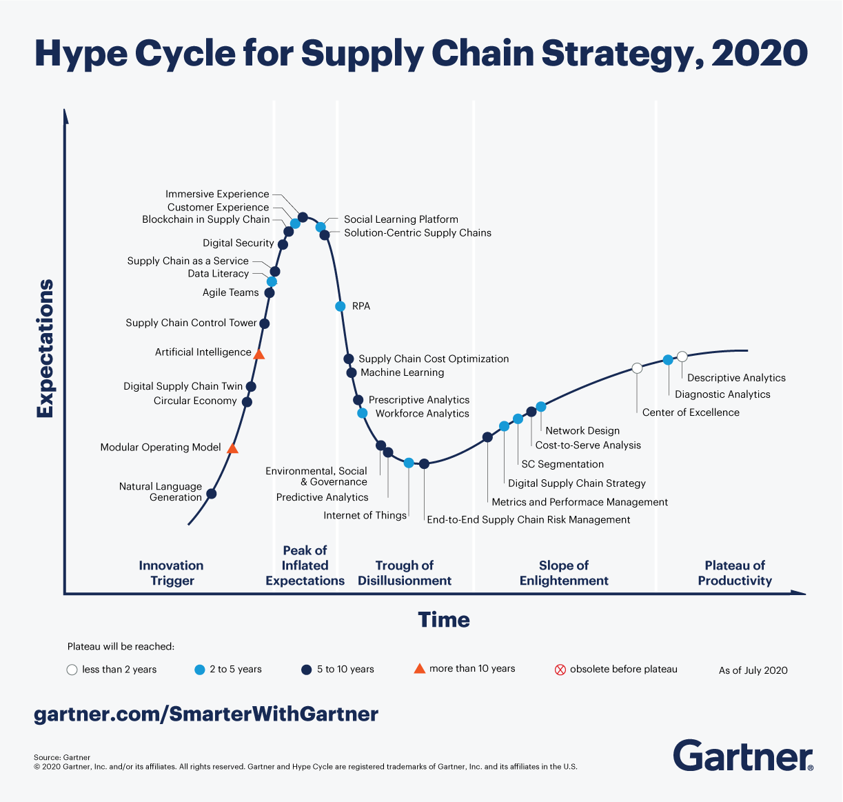 In a turbulent year mired by uncertainty, supply chain leaders could be forgiven for wondering where to pivot next. Fortunately, Gartner’s ‘Hype Cycle‘ sheds some light on where firms should prioritise their investment and innovation.