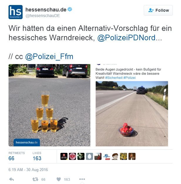 „Abi akys užmerktos – jokių baudų už kūrybiškumą! Nors įspėjamasis trikampis būtų buvęs geresnis pasirinkimas“, – savo „Twitter“ paskyroje juokavo Vokietijos Šiaurės Saksonijos-Anhalto policijos departamentas, kartu paviešinęs ir sunkiai įtikinamą nuotrauką.