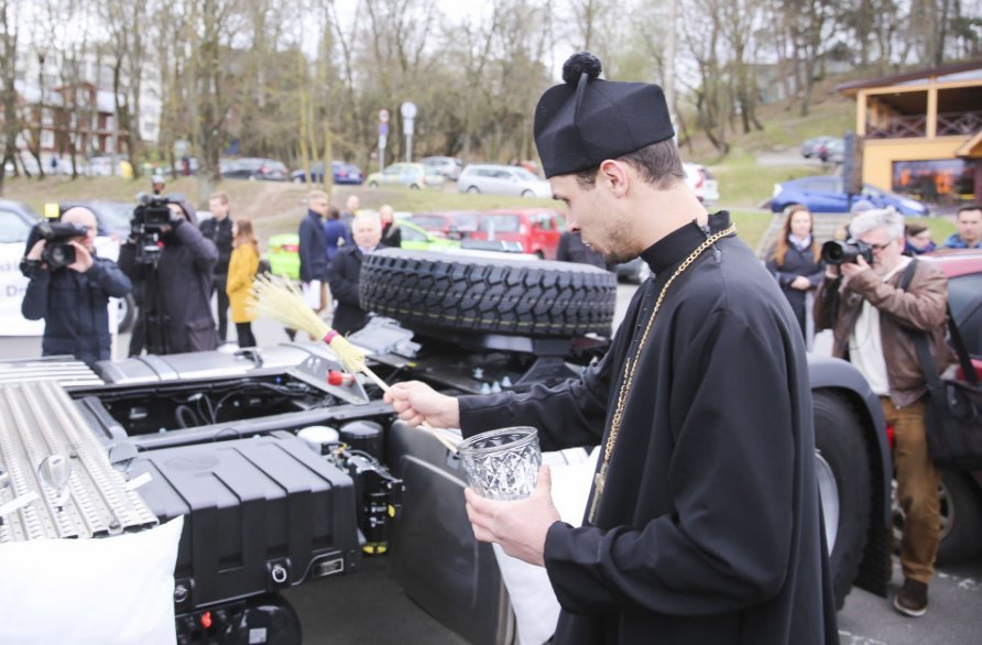 Akcijos vieta greta bažnyčios pasirinkta neatsitiktinai. Pasak J. Kuklio, smulkiesiems vežėjams nebelieka nieko kito, kaip imtis netradicinių būdų apsaugoti savo vilkikus. Vienas jų – prašyti Dievo pagalbos. Akcijos metu kunigas šventino vilkikus nuo nelaimių ir kvietė vežėjus bendrai maldai.