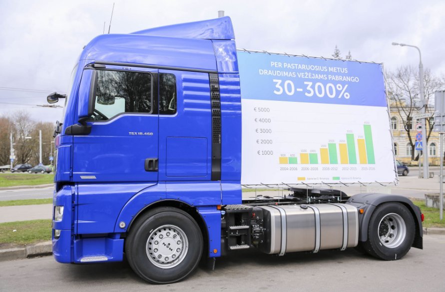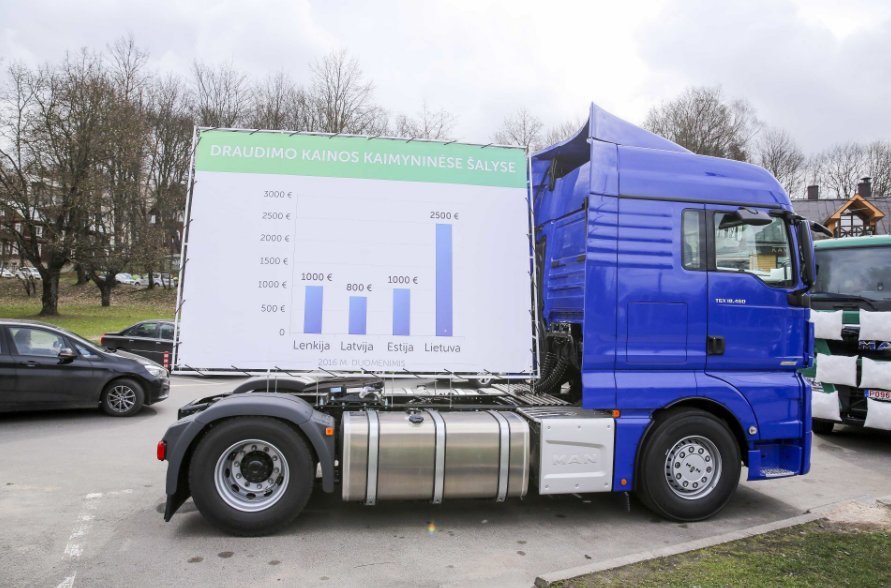 Antradienį kelios dešimtys Lietuvos vežėjų susirinko į protesto akciją Vilniuje, aikštelėje šalia Vilniaus Šv. apaštalų Petro ir Povilo bažnyčios. Tokiu būdu verslininkai siekė atkreipti dėmesį į augančias draudimo kainas. Pasak jų, privalomojo civilinės atsakomybės draudimas kai kuriems vežėjams per pastaruosius porą metų paaugo net 3 ar 4 kartus.