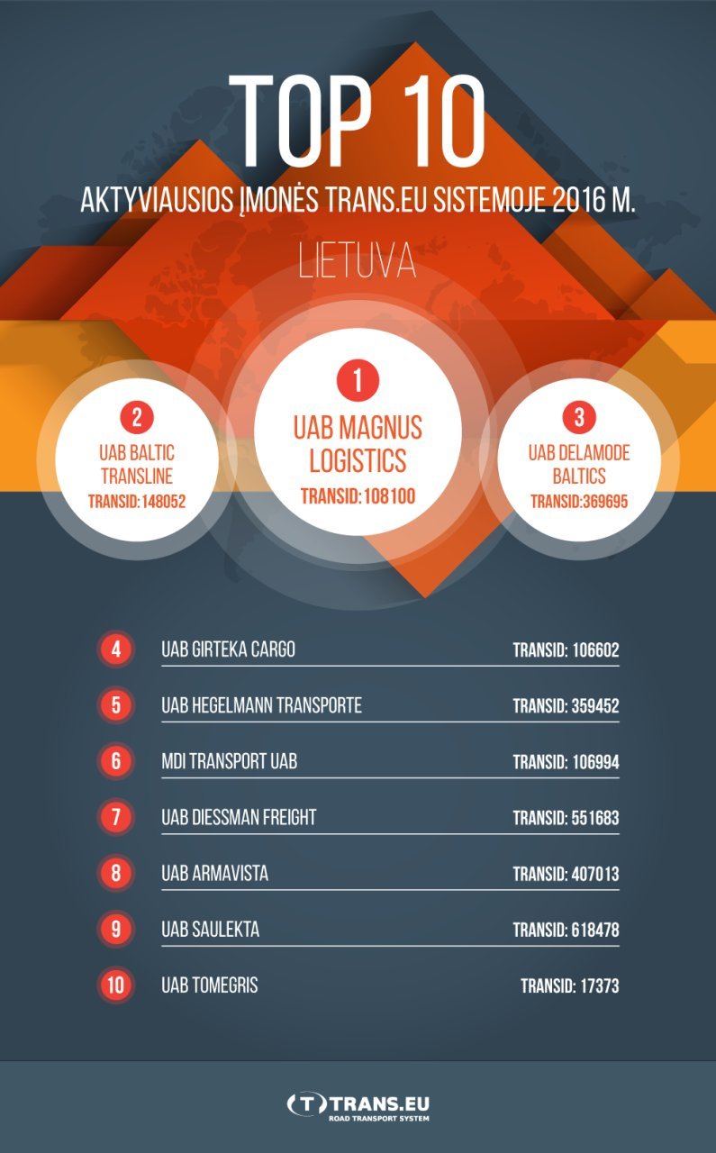 TOP10 sąrašas sudaromas pagal aktyvumo indeksą. Kiekviena įmonė Trans.eu Sistemoje surenka taškų sumą už tam tikrus kriterijus. Daugiausiai taškų turinčios įmonės patenka į metinį TOP10 reitingą.