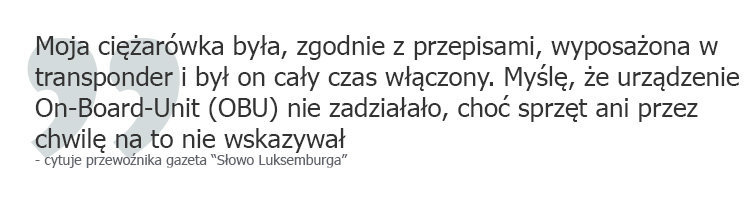 Kara w wysokości 14.000 euro składa się z 14 osobnych mandatów za 14 pojedynczych wykroczeń. Za każde naruszenie przepisów dotyczących myta w Belgii grozi mandat w wysokości 1 000 euro. Przewoźnik na początku października otrzymał orzeczenie o karze grzywny bez wcześniejszego wezwania do zapłaty ani informacji z belgijskich urzędów o niewłaściwym funkcjonowaniu jego urządzenia OBU.