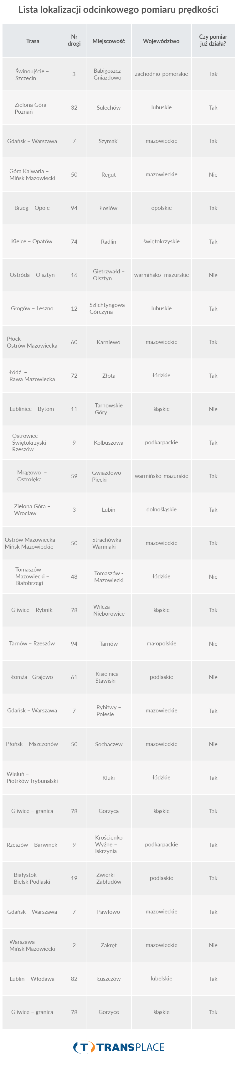 Przedstawiamy wykaz odcinków, na których uruchomiono już pomiar prędkości: