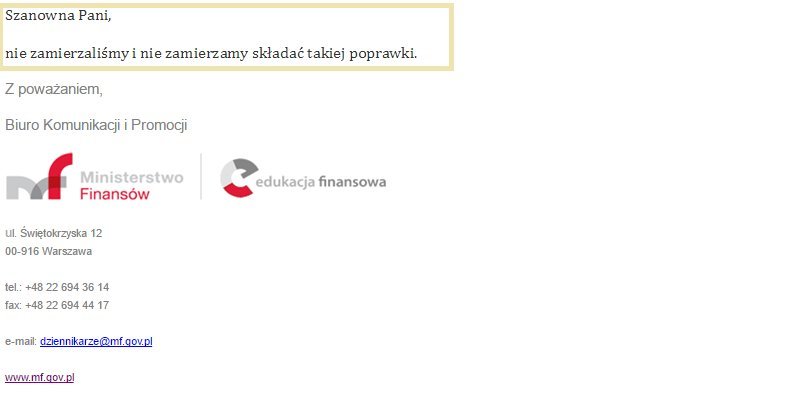 Urzędnicy zdementowali jednak, aby pracowali nad takim projektem. Biuro prasowe Ministerstwa Finansów na nasze pytanie w tej sprawie odpowiedziało krótko: