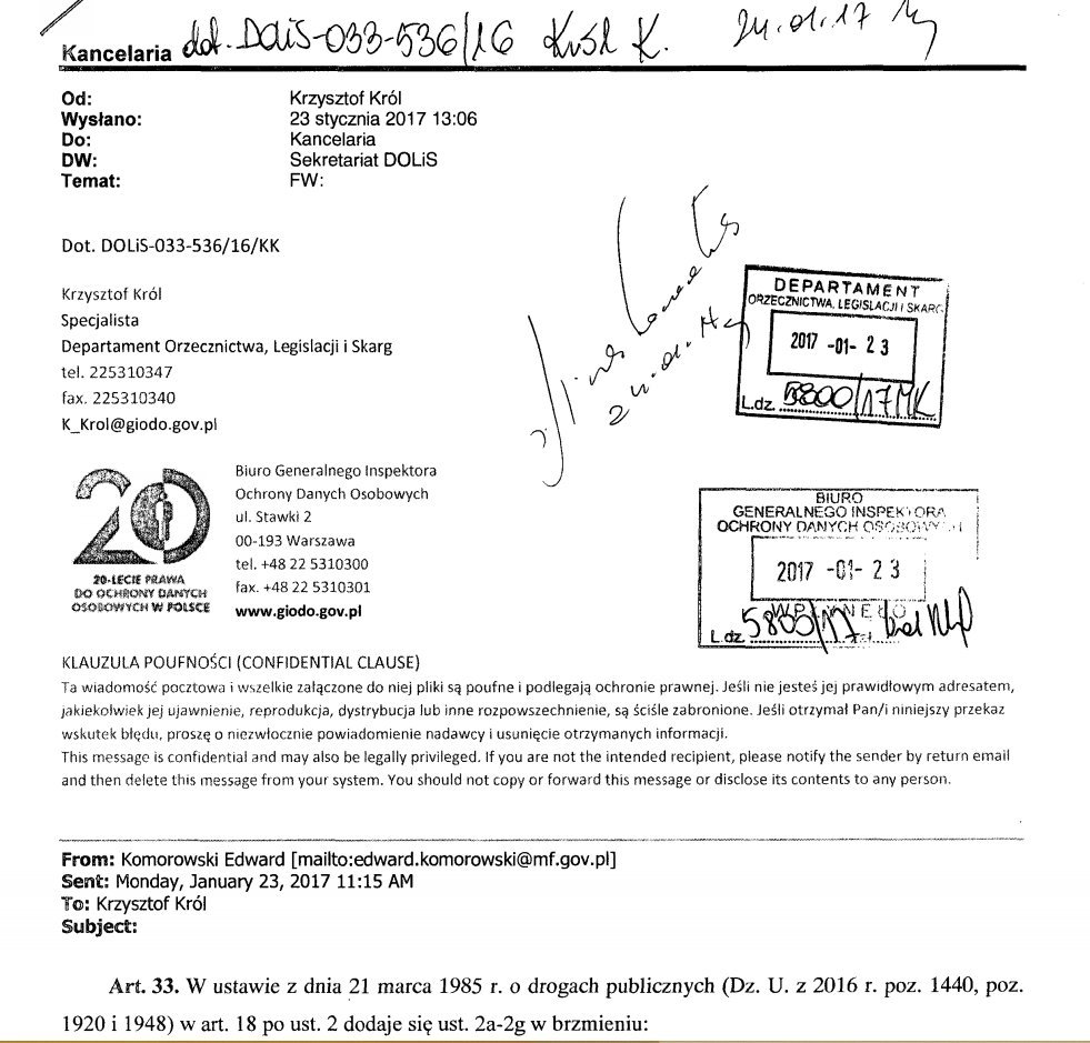 – Zgodnie ze zdobytymi przez nas informacjami, kontrowersyjna poprawka faktycznie powstała w Ministerstwie Finansów. Ostatecznie nie trafiła do tzw. pakietu przewozowego. Obawialiśmy się, że Ministerstwo doprowadzi do jej przyjęcia na etapie prac parlamentarnych – tłumaczy Małgorzata Szumańska z Fundacji Panoptykon.