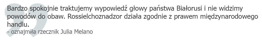 Odpowiedź ze strony Rossielchoznadzor przyszła bardzo szybko.