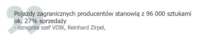W tym roku pojazdy zagranicznych producentów sprzedawały się u naszego sąsiada nieco gorzej niż niemieckie, zaznacza szef VDIK, Reinhard Zirpel, choć ich udział na drogach federalny utrzymuje na stałym poziomie.