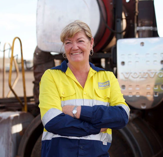 52-letnia Maxine jeździ 10×6 Volvo FH16 z czterema półnaczepami wywrotkami, którymi przewozi nawet 175 tony manganu. Ojciec i zmarły mąż kobiety również byli kierowcami ciężarówek. Jak podkreśla Maxime, mimo codziennych zmagań z samotnością, wszędobylskim czerwonym kurzem i temperaturami sięgającymi 50°C, za żadne skarby świata nie zmieniłaby profesji. Australijka zdradza, że jej sekretem przetrwania jest odpowiednia ilość płynów i dobra klimatyzacja.