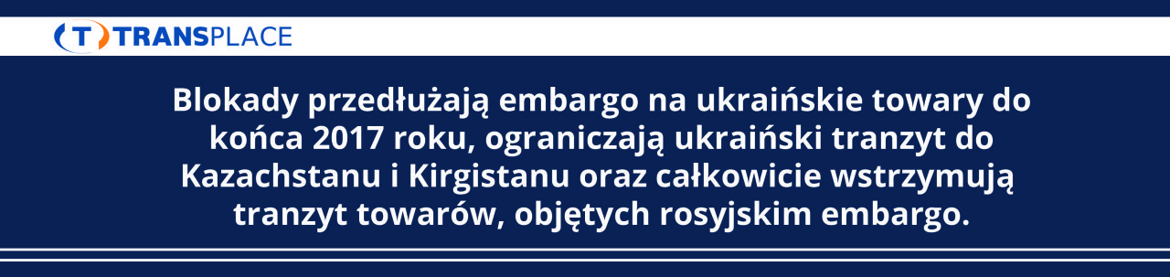 Rosja postanowiła zablokować tranzyt ukraińskich towarów, realizowany do Kazachstanu przez terytorium Federacji. Taki rozkaz został wydany przez Władimira Putina 3 lipca 2016 r.