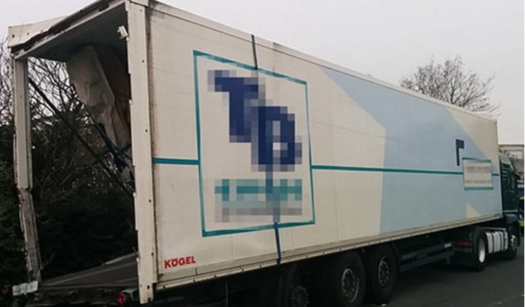 Ciężarówka posiadająca zarówno niemieckie jak i holenderskie tablice rejestracyjne zwracała na siebie uwagę wyglądem. Cała konstrukcja naczepy była mocno naruszona, przypominała wręcz otworzoną puszkę sardynek. Naczepa pozbawiona była również dwóch kół.