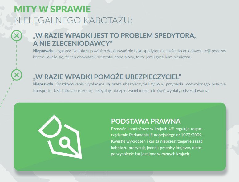 Zgodny z przepisami jest także jeden przewóz w ciągu trzech dni, licząc od daty wjazdu do kraju bez ładunku do dnia rozładunku towaru przewożonego w ramach kabotażu.