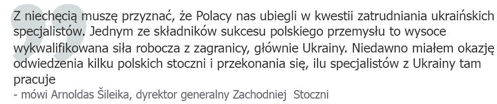 Arnoldas Šileika opowiada, że pracownicy z Ukrainy są bardzo potrzebni dla litewskiego biznesu, w tym również przemysłu stoczniowego. Problem polega na tym, że najlepsi specjaliści już są zatrudnieni w innych państwach, na przykład sąsiedniej Polsce.